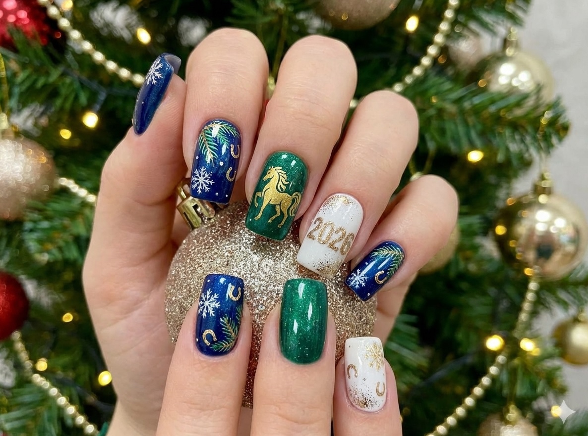 При выборе новогоднего маникюра учитывайте общий образ и наряд. Яркий красный маникюр с золотом подойдет к платьям нейтральных оттенков, а более сдержанный дизайн с блестками дополнит насыщенный праздничный наряд. Огненная Лошадь ценит все яркое, но натуральное, поэтому баланс между декором и элегантностью важен.